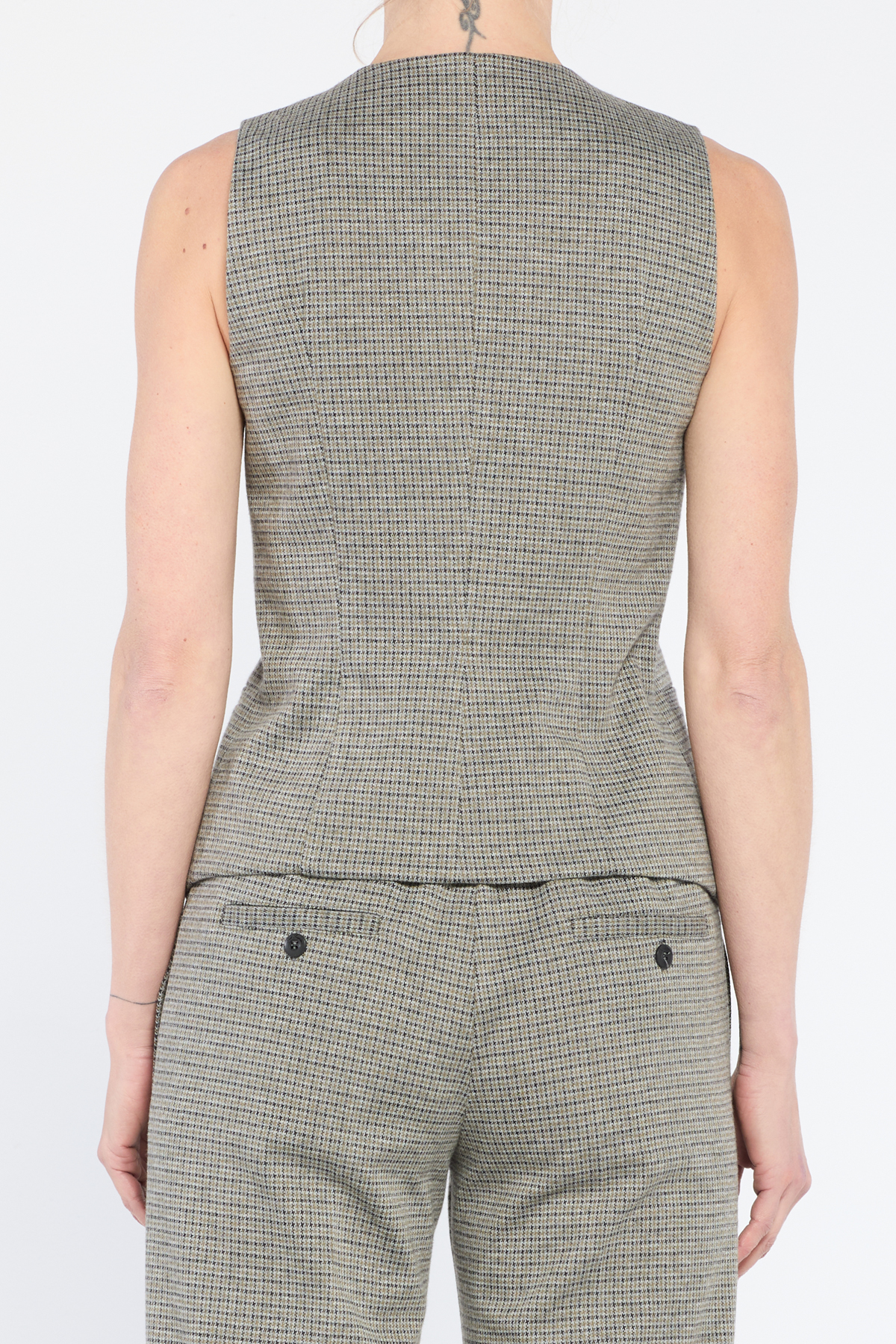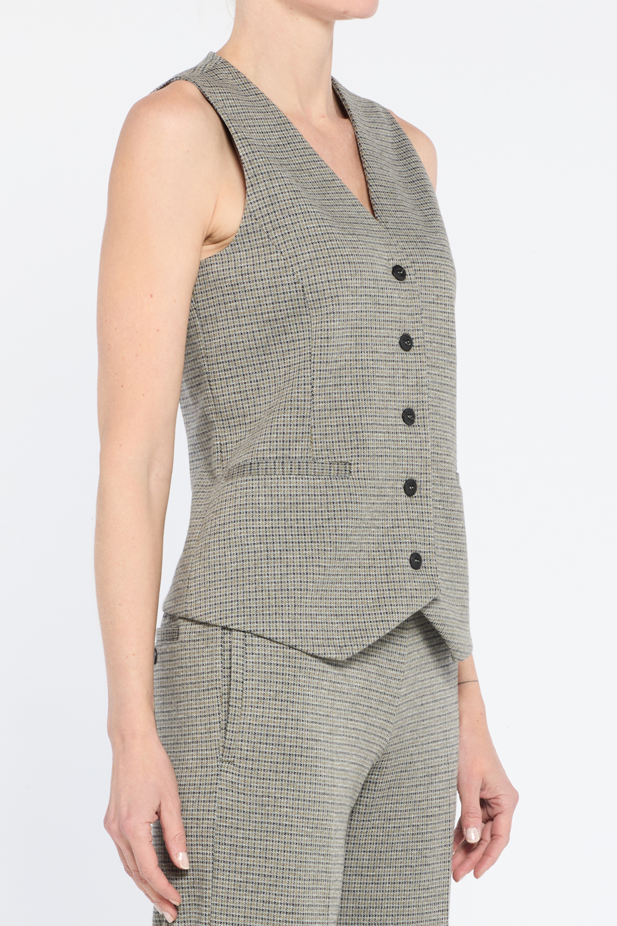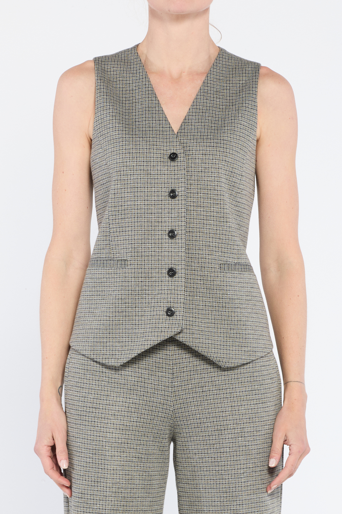 Gilet maschile con tasca finto filetto davanti e chiusura con 5 bottoni e con fodera dietro in contrasto colore.